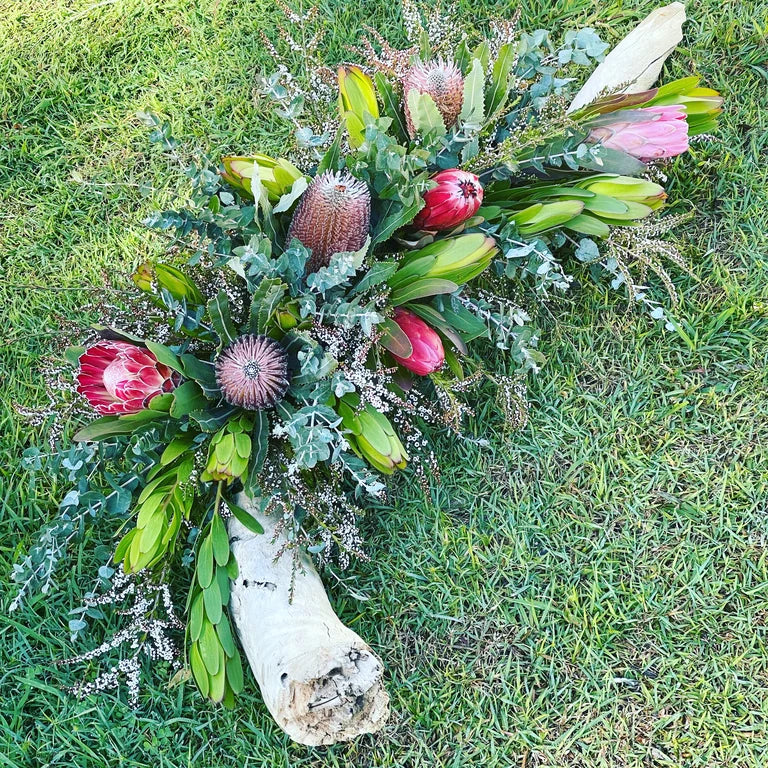 Upon this natural canvas, a profusion of blooms unfolds—a celebration of colour, texture, and form featuring stunning Australian natives.